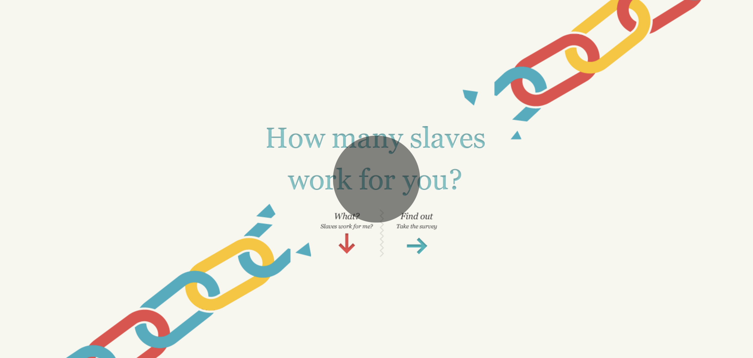 There are currently about 27 million people in slavery around the world – more than ever before in human history. As shocking as this statistic is, it’s still a statistic and a subject matter that feels too big and too far removed. The goal of the project is to make it personal, to build a deeply personal narrative experience while gathering each users behavior/consumer habits, processing their results, and sharing methods of offsetting their footprint in a digestible and inspirational way.